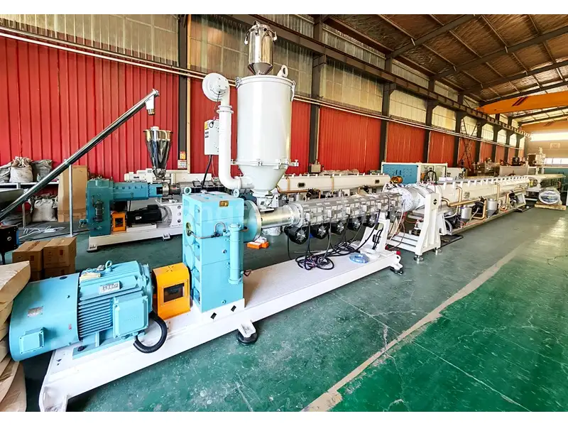 Využívá vysoce účinný jednošnekový extrudér SJ75/33 s energeticky úsporným servomotorem 75-90 kW (snižuje spotřebu energie asi o 20 %), převodovkou s přímým pohonem (pro lepší účinnost přenosu a snazší údržbu), odolným šnekovým válcem (vyrobeno z legované oceli 38CrMoALA s přesným comilronovým automatickým řízením teploty a infračerveným nitridováním). vysoce přesný ovladač). Všechny tyto vlastnosti spolupracují na udržení stabilního tavení materiálu, rovnoměrného vytlačovacího tlaku a konzistentní kvality produktu během výroby.