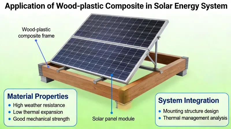 Dřevo-plastový kompozit (WPC) se objevil jako klíčový materiál v solárních energetických systémech, včetně fotovoltaických (PV) držáků, plovoucích elektráren, integrace fotovoltaických budov a skladování koncentrované solární energie (CSP), díky svým ekologickým vlastnostem, odolným vůči povětrnostním vlivům, nízké hmotnosti, nenáročným na údržbu a snadno zpracovatelným vlastnostem. Postupně nahrazuje tradiční kovové a dřevěné materiály.