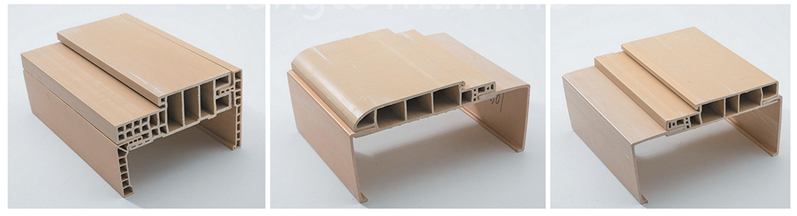 PE plast + 10%-15% vyztužený skelným vláknem + 50-60% dřevěný prášek + koextrudovaná vrstva proti stárnutí + zesílená struktura |